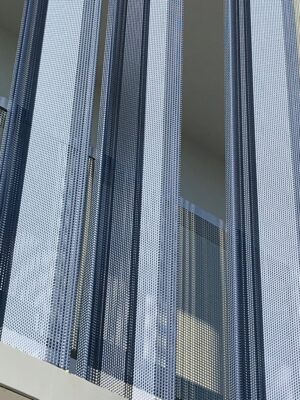 Das Endergebnis ist ein modernes, effizientes Gebäude, in dem die Lochbleche sowohl eine ästhetische Funktion der visuellen Aufhellung der Struktur (dank des Effekts des abwechselnden leeren und vollständigen Bohrens) als auch der Dynamik (dank der Welligkeit derselben) haben. Sondern auch eine praktische Funktion als Sonnenschutz.